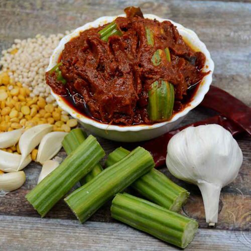 Add a burst of flavor to your meals with our signature Mutton Pickle, expertly crafted from fresh, halal-cut lamb or sheep meat. This traditional delicacy combines the perfect balance of spice, tanginess, and crunch, making it a true culinary delight.Mutton With Bones Pickle